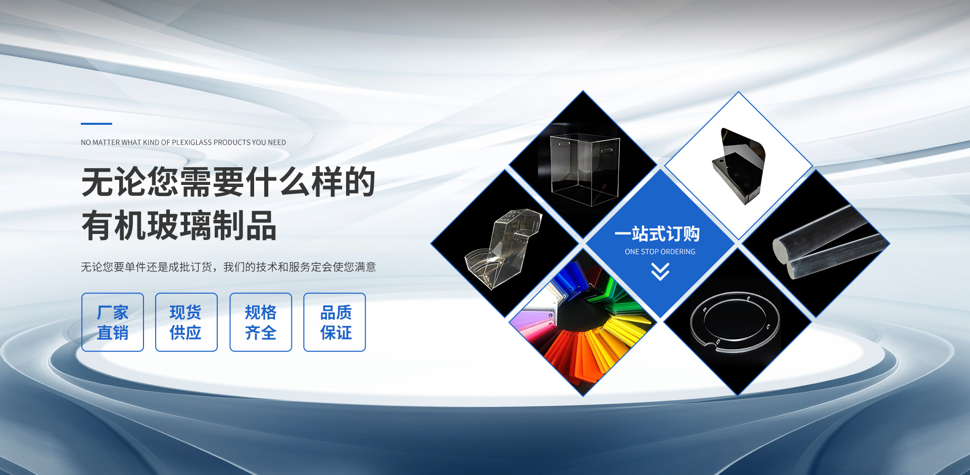 本公司有能力承接各種工業(yè)有機(jī)玻璃制品、操縱面板、臺牌道具、廣告燈箱、電話亭、工藝品、工藝禮品、紀(jì)念品、酒店用品、各類展示架等等,以及廣告業(yè)的配套設(shè)施、各種大型、異型產(chǎn)品等一系列有機(jī)玻璃制品。